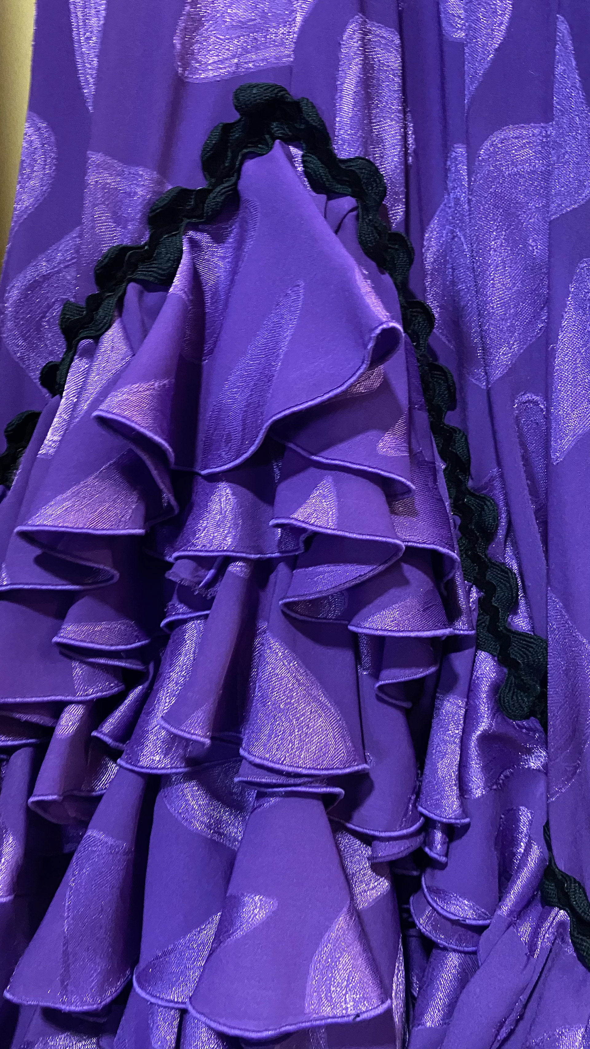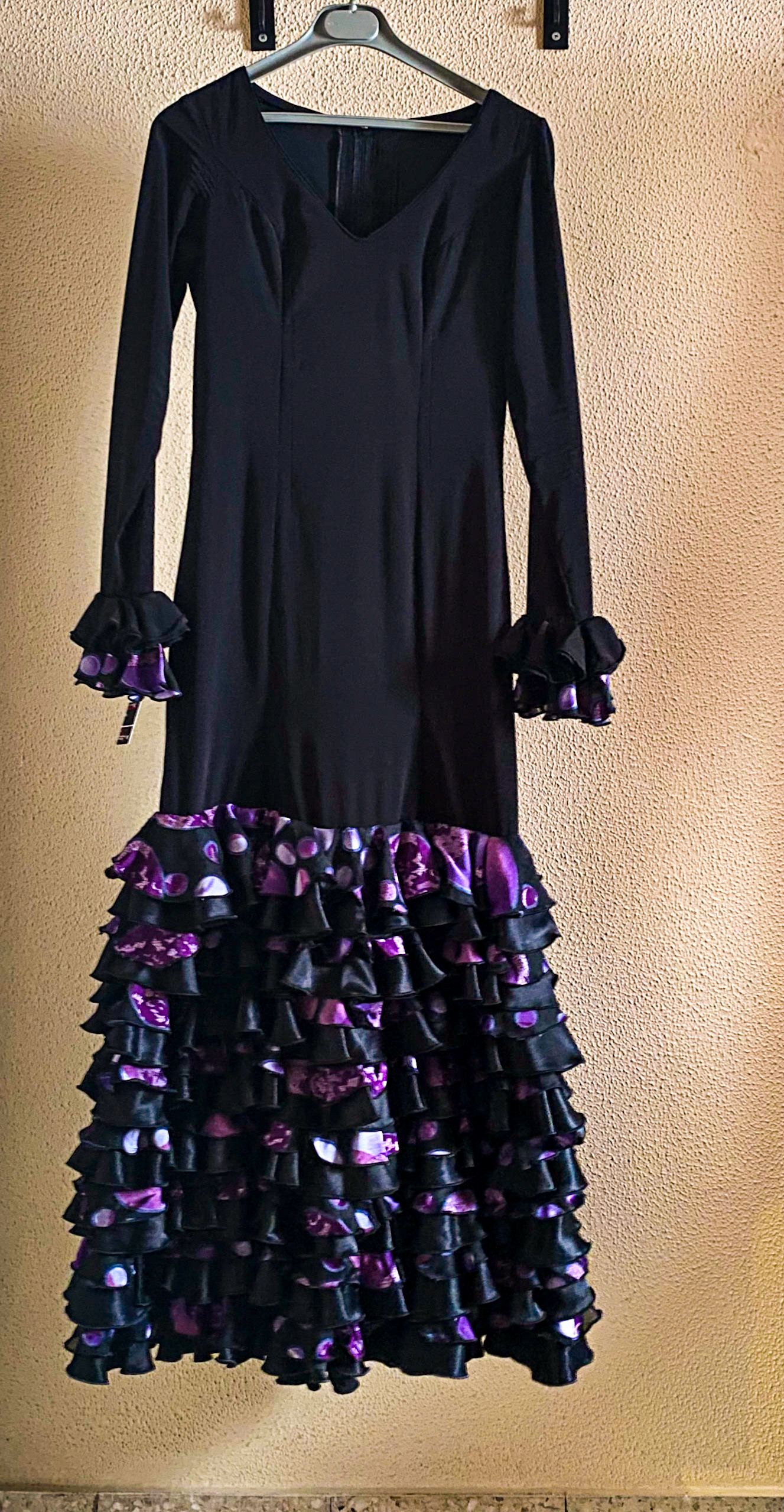 Black dress with patterned violet ruffles, designed by “Marina Flamenca”. TAILOR-MADE. Barely new.