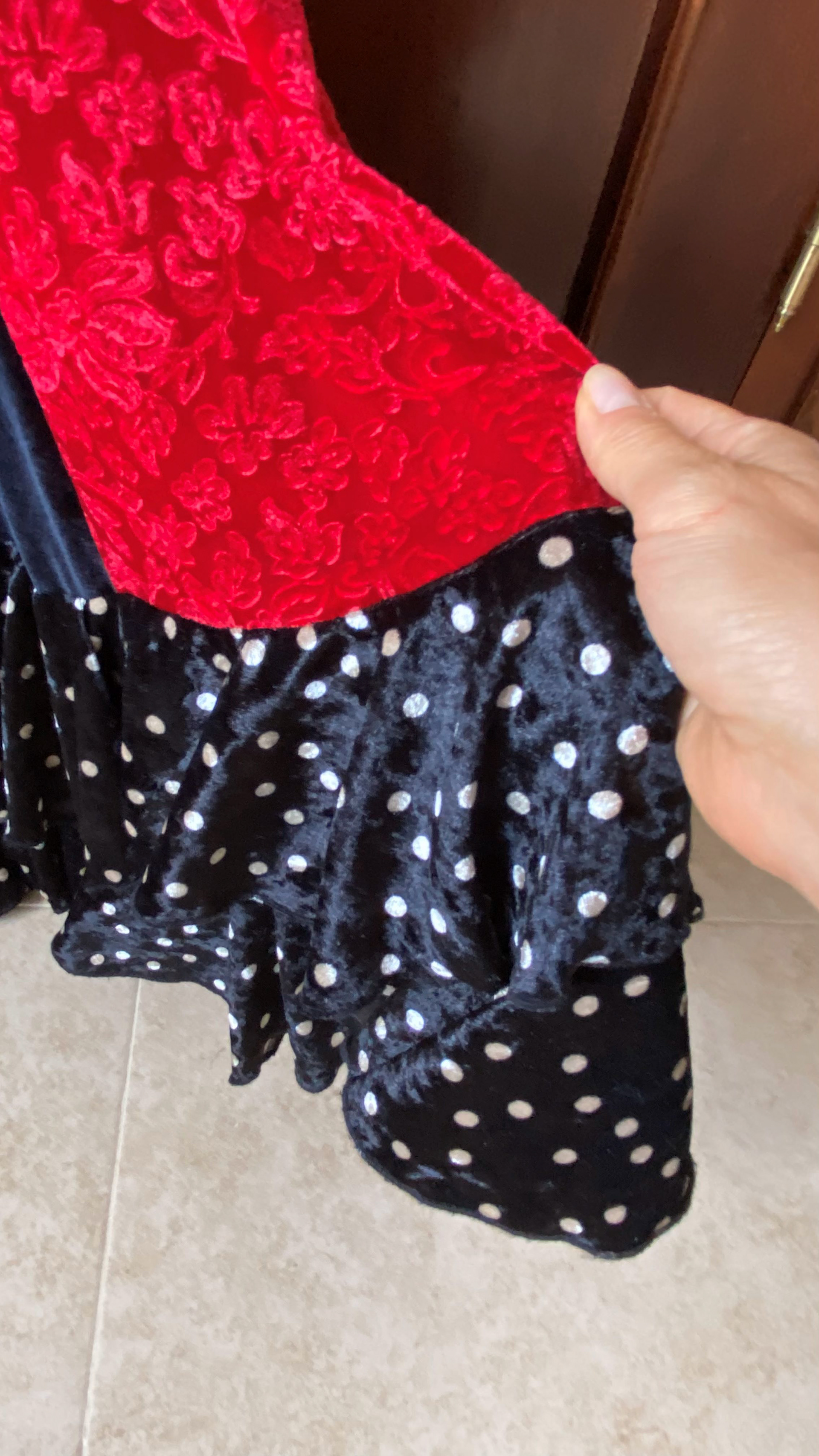 Set of black skirt with ‘nejas’ and white polka dot underskirt + black shirt with polka dot frill. Barely used. TAILOR-MADE.